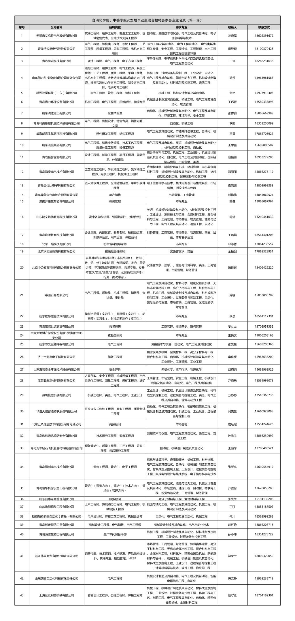 pg电子平台 、中德pg电子平台 2021届毕业生联合招聘会参会企业名录(第一场)