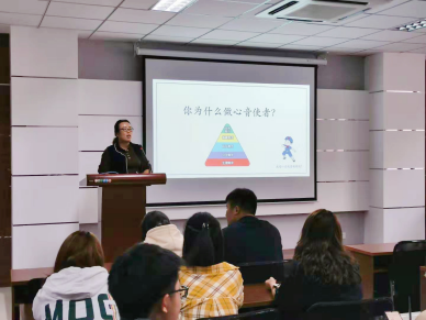 心理工作站在409会议室举办了“心音使者”业务培训会,2019级全体心音使者参加了培训,培训会由心理工作站站长郭蒙蒙主讲。