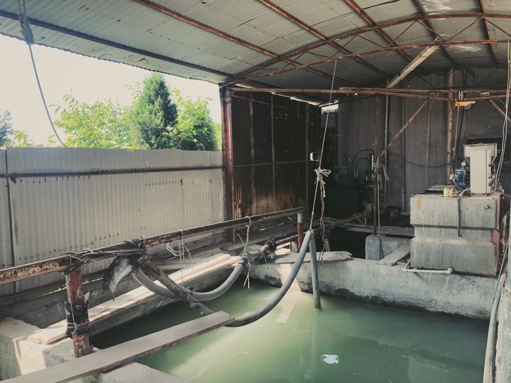 经过政府的大力整治,人和镇的所有石料工厂都实现了“厂房标准化、车间封闭化和生产清洁化”。调研团队成员在殷先生的带领下着重参观了厂内的污水处理系统,该系统将生产大理石排放的污水通过一级级的净化处理,再将达标后的净化水一部分排放,一部分投入生产,该设备有效地防止了对环境的污染,同时又使原料达到了最大程度的利用。厂内另一特色是全自动切石机,该机器最大的亮点是它的动力来源于沼气、水力和电力,大大节省了能量的消耗以及解放了劳动力。殷先生表示:“最开始政府让集体搬迁来工业园时我们厂里亏损了一些,再加上花了七八百万的包装、引进新设备和污水处理系统,厂内低迷了一段时间,但现在因为新设备原料的节省以及废料的回收利用厂内盈利连年翻倍,早已转亏为盈。”
