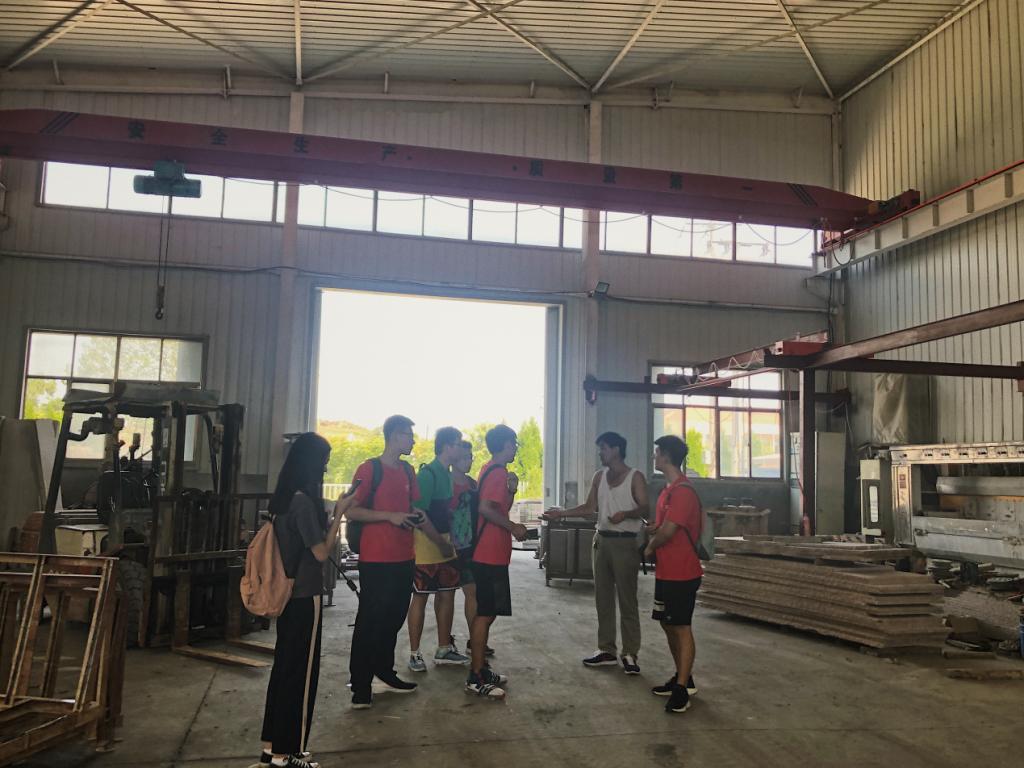 为了解人和镇对工厂详细的整治,调查团来到了当地的怡悦石材并与该工厂负责人殷术虎先生进行交谈,殷先生对于团队的到来表示热烈欢迎,带领团队参观了工厂内设施、污水处理装置以及工厂环境,并与厂内工人就设备升级展开讨论。