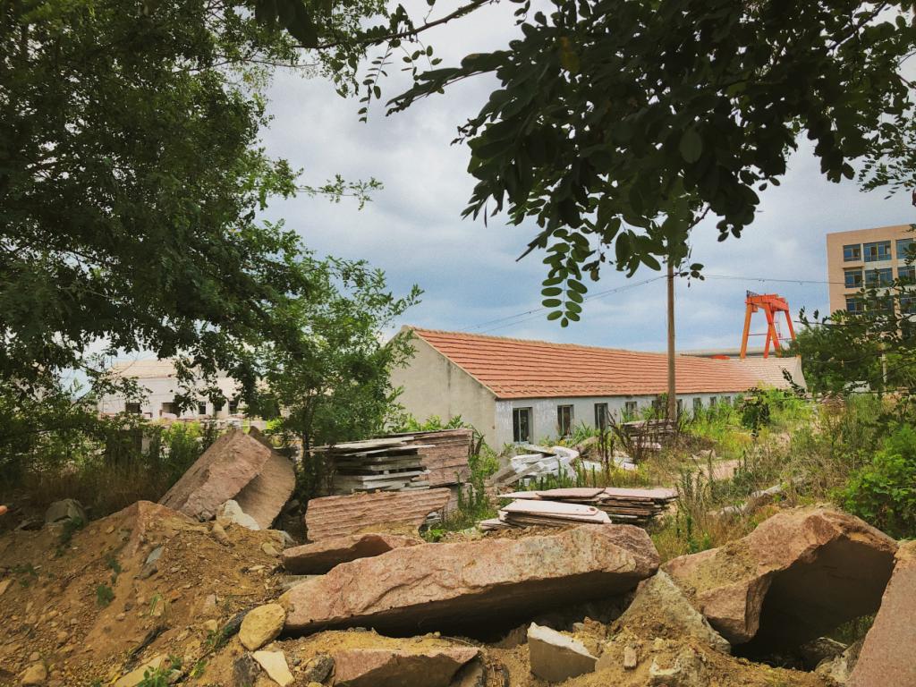 从上世纪90年代起海产品、石料加工等产业就成为了镇域主导产业,但同时这些产业也都属于高污染产业,污水到处流淌、加工石材的灰尘肆意横飞,严重影响着人和镇当时的空气质量。通过与人和镇居民交流,团队成员了解到了最近几年通过政府政策干预,高污染企业搬迁至工业园中,同时引进了先进的污水处理设备和除尘装置统一处理工业园中的污染问题,将未参与整治的石材厂全部关停以及取缔海产品晒场。7月20日8:00队员们沿路观察了分布在道路两边石材厂,注意到在每家整改后的石材厂,都有明显的“环境保护利在千秋”的宣传标语,体现了人和镇对空气污染治理的信心和决心。