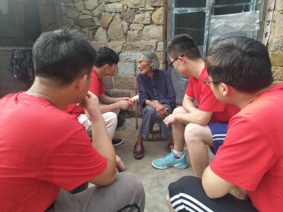 沂水历史悠久,是著名的革命老区,为沂蒙精神发祥地之一。为了更好地了解沂蒙精神,进一步激发调研团成员爱国、爱党的热情,引导学生树立远大理想,坚定“永远跟党走”的理想信念,7月23日,调研团成员来到了93岁老党员郝奶奶家中与其交流沟通。