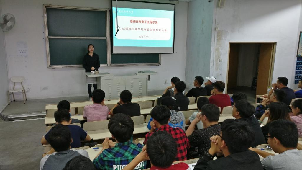 2017级在弘毅楼E306召开“新学期、新气象、新成长”学风建设总结暨安全教育大会,会议分专业连续召开4场,2017级兼职辅导员张慧敏、全体同学参加会议,会议分别由2017级辅导员老师刘海波、崔瑜涵主持。