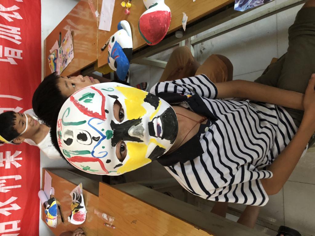 在课堂上,支教团队员们通过教授画脸谱的方式让孩子们体会艺术之美。在队员们耐心细致的指导下,各式各样的脸谱跃然画纸上。孩子们尽情展现他们的想象力,兴致盎然地向支教团队员们展示他们的作品。待所有脸谱绘制完成,队员们给每位同学分发了一个未经绘涂的脸谱,孩子们将自己刚刚所设计的脸谱再次绘涂到脸谱上。看到孩子们开心的笑容,队员们感到十分的欣慰。