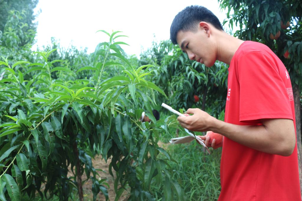 蒙阴蜜桃是山东省蒙阴县特产,中国国家农产品地理标志产品。为调研蜜桃种植的过程,体验果农劳作的艰辛,8月6日,青岛科技大学赴蒙阴县桃墟镇“蒲公英”调研团在陡山社区开展桃园实地调研活动。
