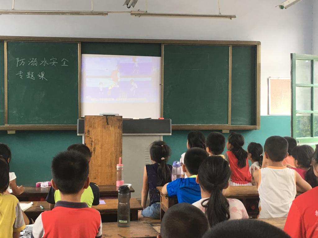 活动上,调研团成员结合我国中小学发生溺水事故的总体情况,列举多起溺水伤亡的悲惨案例,告诉孩子们溺水是我国中小学意外身亡事故中的“头号杀手”,引发了孩子们的深刻思考。随后,调研团成员向孩子们提问怎样防溺水和遇到溺水应该怎样做,孩子们纷纷举手回答问题,气氛非常活跃。调研团成员向孩子们讲述中小学生游泳时的注意事项;溺水的主要原因以及如何采取急救措施;反复强调学生防溺水必须做到的“四不”(未经家长、老师同意不去;没有会游泳的成年人陪同不去;深水的地方不去;水库、池塘不去)。最后,孩子们一起观看了《防溺水和游泳自救宣传教育动漫》,孩子们看的非常认真,仔细学习防溺水自救知识。