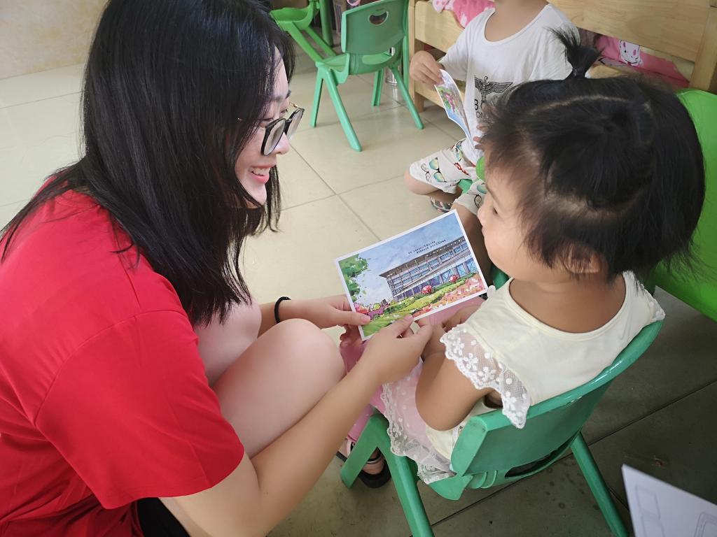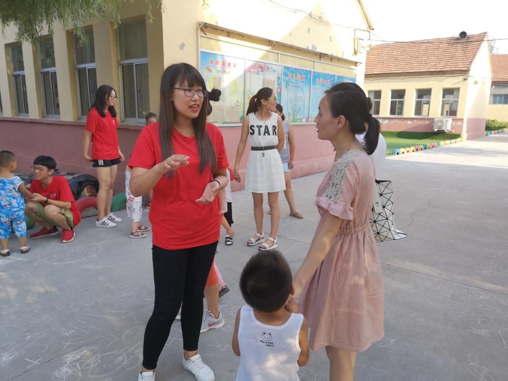 早八点,实践团队开始了一天的实践活动,在园内老师的配合下,完成孩子的饮食,教学等相关事宜,随后团队成员与园长共同讨论了孩子现行主要的问题,如留守儿童的心理健康状况,内向儿童的交往表达情况。针对这些孩子,实践队员组成一对一帮扶小组,更直观深入地了解孩子,并给予帮助。放学后,实践团队的各个成员与孩子们的家长进行了密切交谈,了解记录孩子们在家里的行为表现,进一步明确了对孩子们教育关爱的方向。
