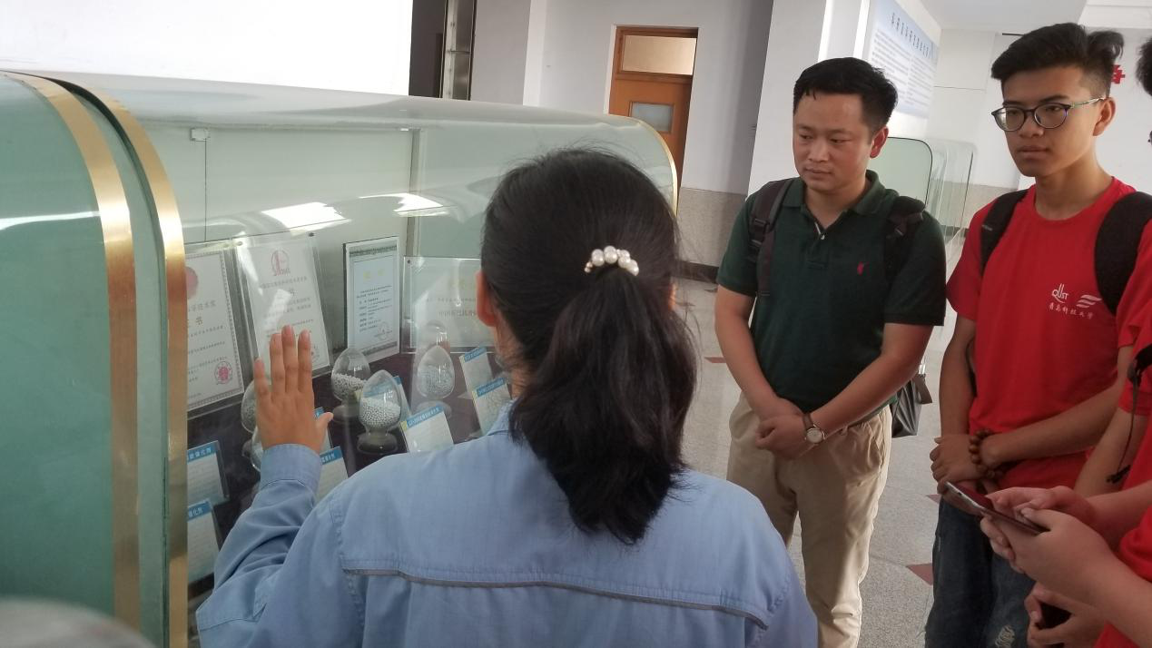 7月21日上午,青岛科技大学赴齐鲁石化“新旧动能转换”调研团在指导老师刘海波的带领下对齐鲁石化新型催化剂进行参观学习和了解,工程师徐翠翠为团队成员详细地介绍了新型催化剂的研发过程和突出成就。