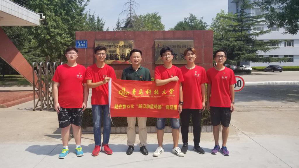 7月20日上午,青岛科技大学赴齐鲁石化“新旧动能转换”调研团在指导老师刘海波的带领下到达齐鲁石化研究院,在齐鲁石化研究院门前刘海波为调研团队员举行佩戴团徽仪式。