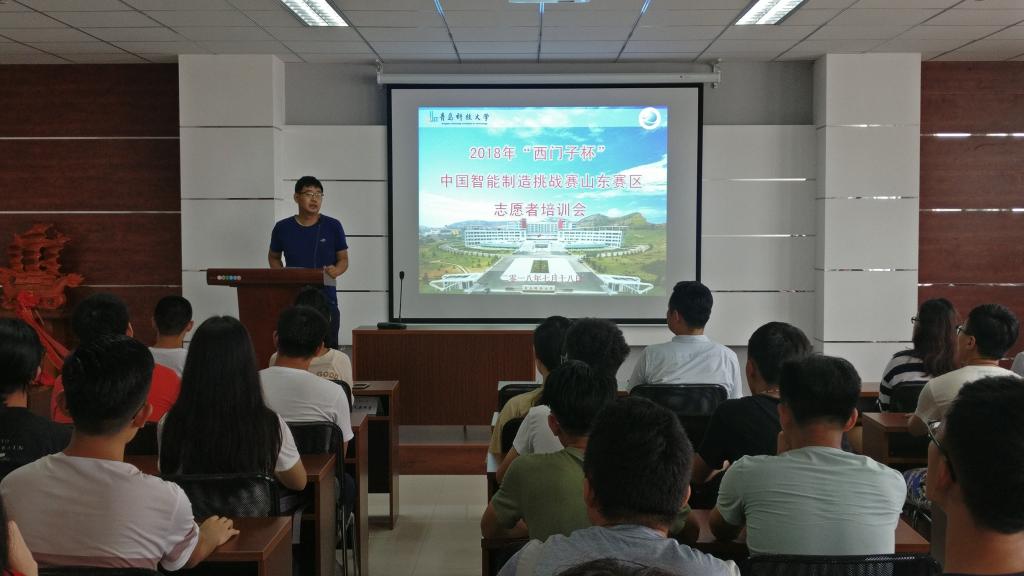 在崂山校区D1实验楼410会议室举行教育部2018年第12届“西门子杯”中国智能制造挑战赛志愿者培训会,出席本次培训大会的有自动化与电工pg电子平台