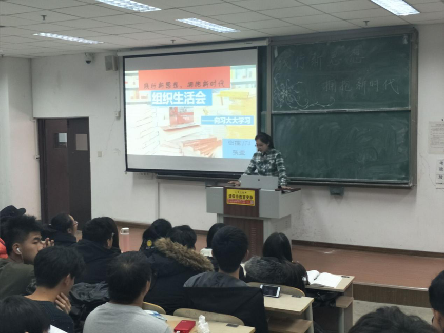 伴随简要的开场白,测控174班团支书张莹就此主题与大家分享了《习近平的七年知青岁月》给现在青年的启发,号召同学们向习近平主席学习。测控173班团支书黄莹跟大家分享了人民日报给青年的一封信《中国青年:我们的征途是星辰大海》,引发同学们对当下和未来的思考。174班文体宣传委员张琨和173班学习委员则与大家交流分享了自己对十九大精神的认识和学习经验方法。会议上王涛老师与同学们交流了他对当代中国的认识,呼吁当代青年要有文化自信,并对同学们现在的学习生活进行了指导。活动的最后各宿舍进行了才艺表演,在欢乐中结束了本次组织生活会。