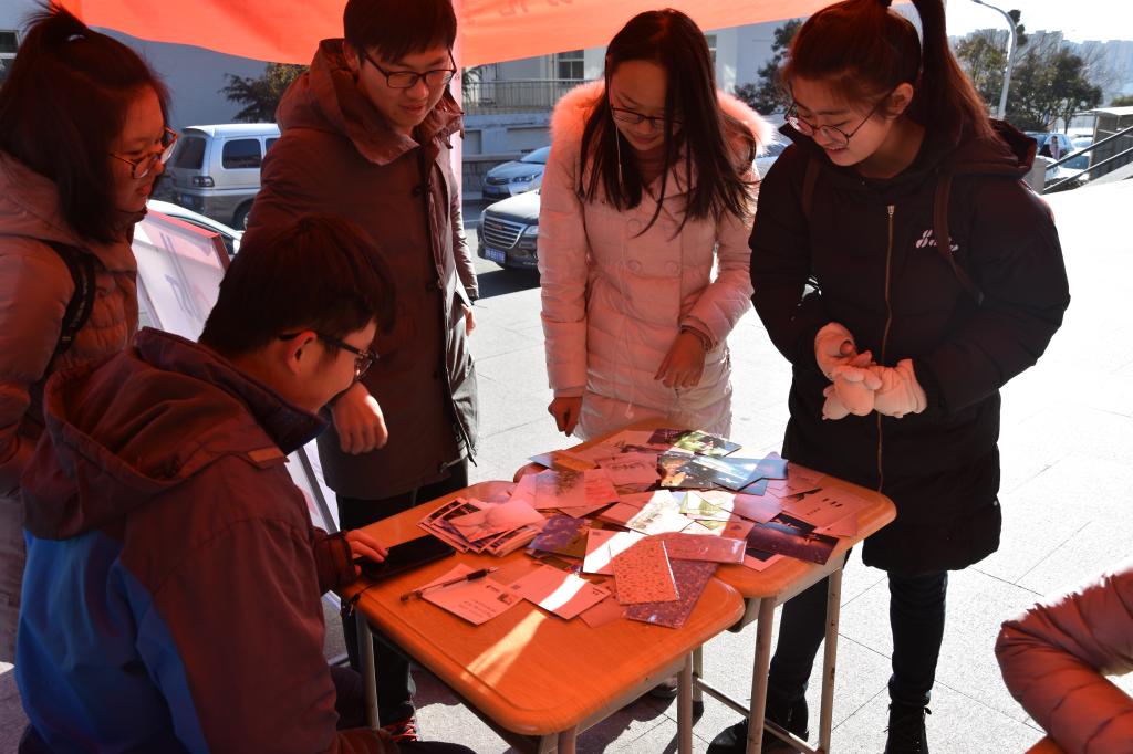 学生会不仅准备了各式各样精美的明信片和信封,考虑到天气寒冷,理解大家带回书写,在活动截止时间内送回。冬季的青岛十分寒冷,冬风时不时刮起,即使如此,此次活动依旧吸引大家纷纷前来参与,活动现场人员络绎不绝。至下午4:00现场活动结束,工作人员依然留下了不少同学的联系方式,帮助大家把握机会,参与活动。