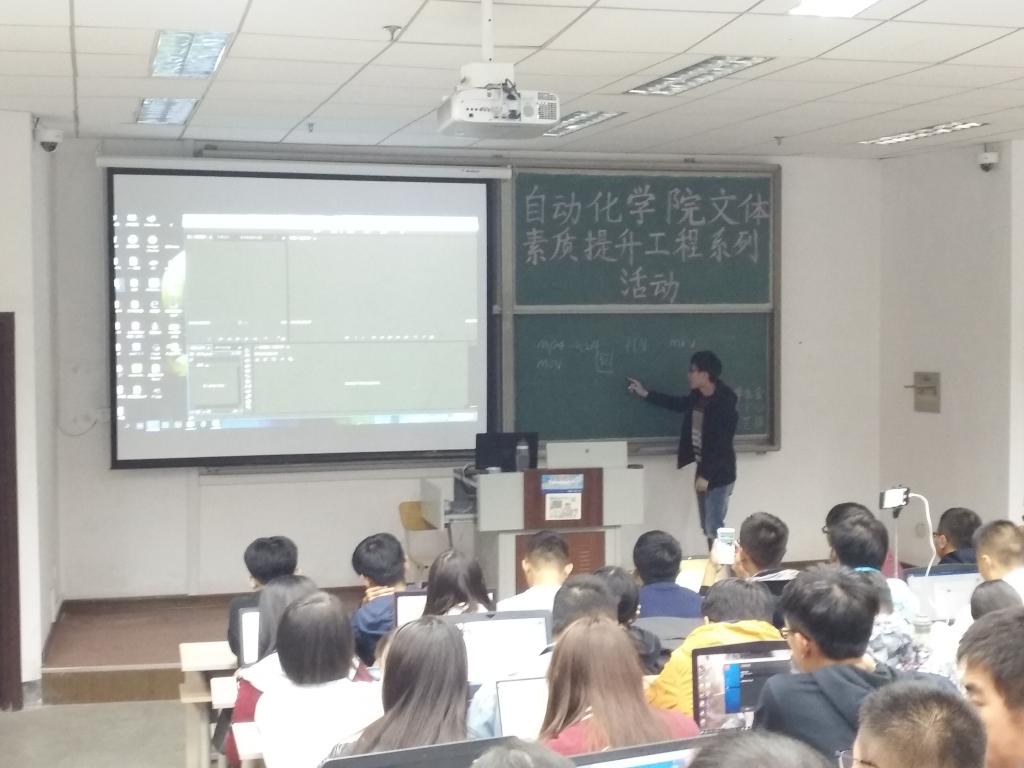 对此,新媒体中心提供了三种视频制作软件:小影、爱剪辑和Pr。小影和爱剪辑操作比较简单,适合使用图片进行类似幻灯片配合背景乐播放,新媒体中心部长任明为大家展示了基本的操作方法。Pr则适合更为精细、配合节奏的动态视频的编排剪辑,学生会邀请到测控162班的胡锐同学进行专业的介绍。