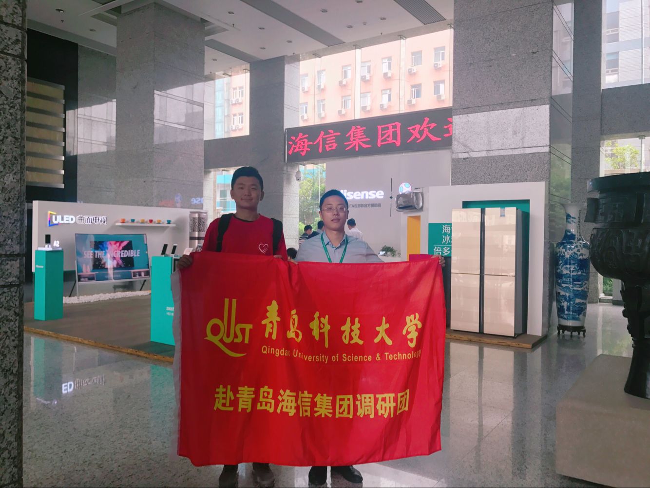 “青岛科技大学赴青岛海信集团调研团”3名志愿者赴青岛海信集团对从自动化毕业的学长进行采访。