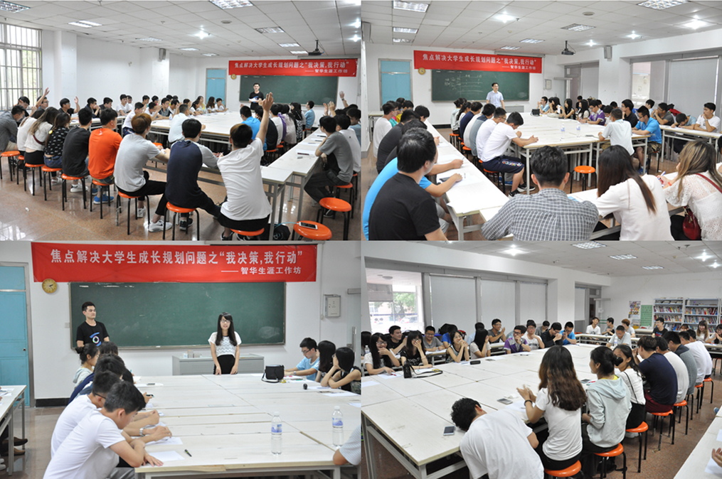 组织开展的“焦点解决大学生成长规划问题之‘我决策,我行动’”沙龙在崂山校区顺利举行。国家人社部职业测评指导师兼蛙人网首席生涯规划顾问刘睿,人才评鉴专家兼蛙人网营销总监张浩然,国家职业指导师张娜等三位生涯导师和40余名学生志愿者参加了本次活动。