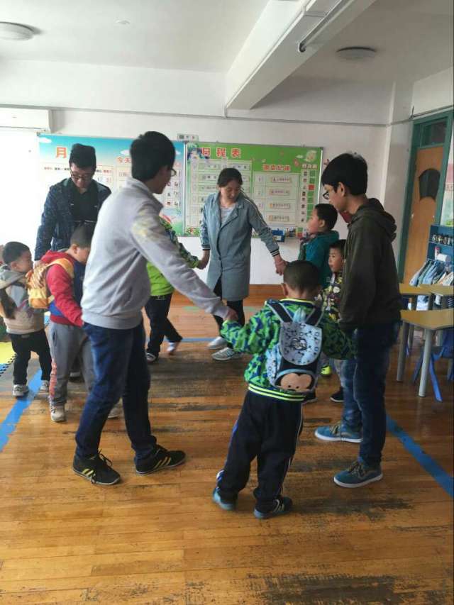 活动初始,负责老师先简单介绍了与孩子们相处的注意事项,并简略介绍了一下园内孩子们的现状。简单的介绍过后,志愿者分成多个小组进入到各个班级和孩子们一起上课。每个小组负责一个小班的孩子,与他们一起上课,辅助他们完成老师布置的任务。其中有的小组通过音乐律动课,看小猪赛跑动画短片,指认动画片角色等活动充分调动了孩子们的积极性。更有小组与孩子互动,唱起了熟悉的《上学歌》;除此之外,通过拍球,荡秋千,走平衡木等体育活动,树立了孩子们勇敢拼搏的自信心。课程内容结束后,进行了每日卫生活动,擦桌子、拖地、摆放桌椅;使孩子们成功收获了劳动的喜悦。