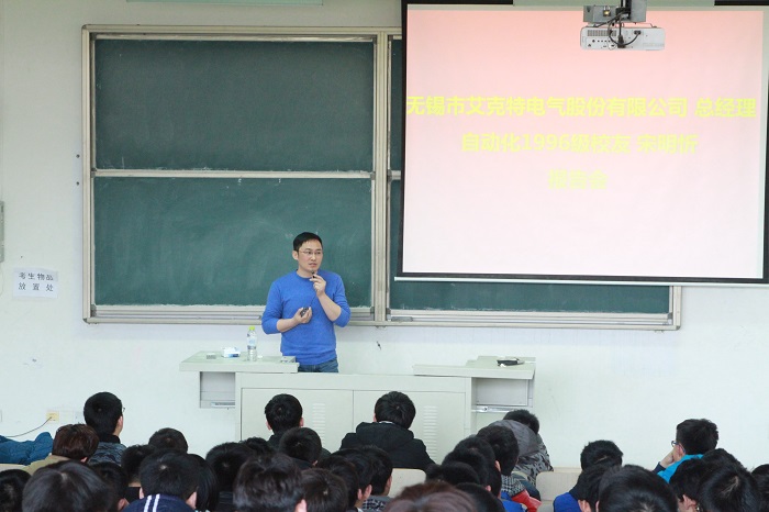 邀请无锡市艾克特电气股份有限公司经理、自动化96级校友宋明忻为自化学子带来了一场精彩的励志报告会;pg电子平台