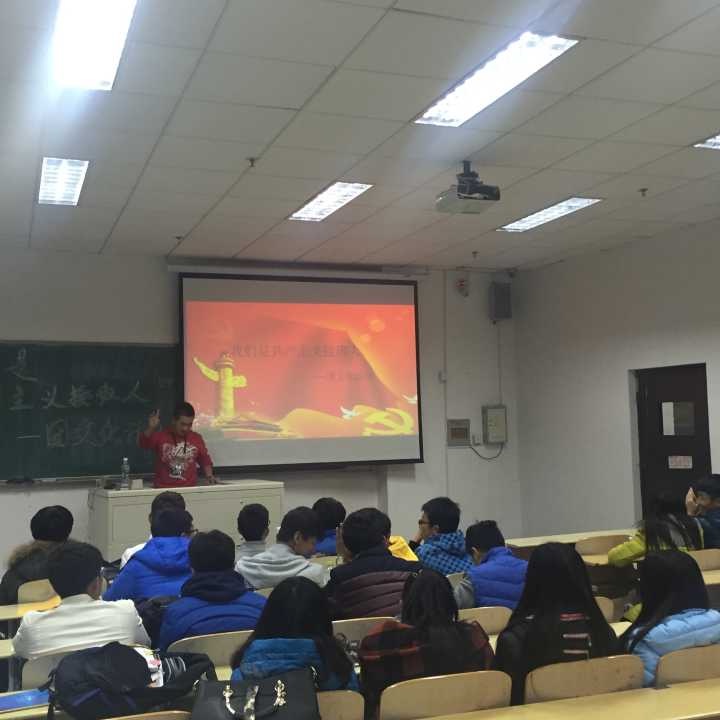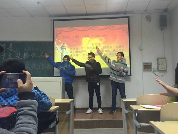 11月28日晚间,在明德楼317,电信152班兴致高昂的同学们早早来到会场准备开始。在主持人满怀激情的开场白下,拉开了活动的序幕。首先进行的是红色诗文朗诵,同学们用洪亮的声音,抑扬顿挫,将党的伟业与祖国的壮丽展现的淋漓尽致。接着,主持人为同学们播放了经典抗日电影《百团大战》,同学们聚精会神,满怀自豪感看完电影,影片中彭德怀将军的足智多谋与义勇善战成为同学们津津乐道的话题。同学们意犹未尽,还在回味影片中激动人心的战争场面时,主持人给每位同学分发一张便贴纸,同学们写下了自己对共产主义的敬仰,也写下作为共产主义接班人的我们,对自己的期望,自己的梦想,在一片欢乐中为本次的活动画上了一个圆满的句号。
