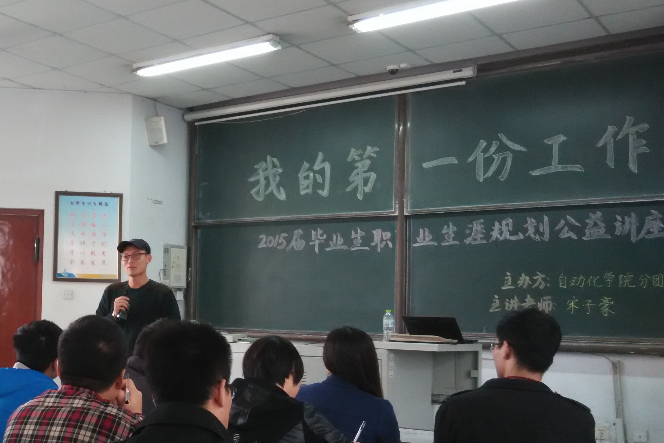 组织的“我的第一份工作”2015届毕业生职业生涯规划公益讲座于11月25日在四方校区一教302召开,讲座特邀宋子豪老师主讲,pg电子平台