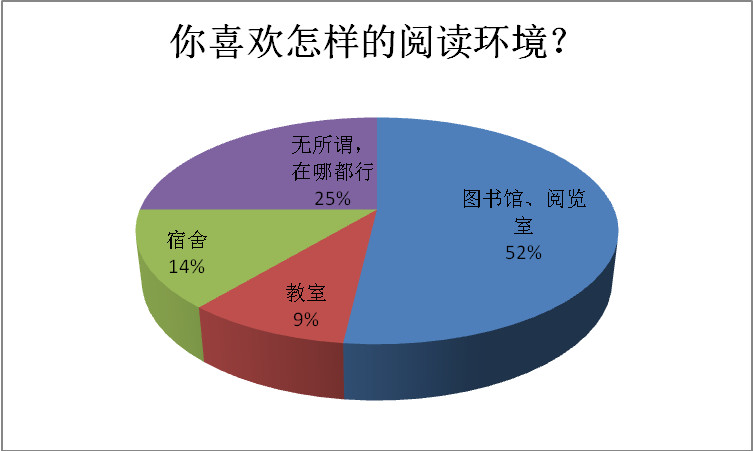 2.大学生的阅读量还有待提升。虽然对读书这个行为持肯定态度,但大学生的阅读量还很不理想。所谓“读书破万卷,下笔如有神”,读书对一个人来说,不仅是对写作水平,对人生修养的提升都有着至关重要的作用。而阅读量是对这种提升的保证。没有量变,就没有质变。读书量偏低折射出当代大学生浮躁的心理。没有踏实认真的学术态度,只追求学分与证书这样对当下有利的事物,缺乏了长远的修身养性的考虑,忽略了对学术精神的培养。于是,图书馆成了自习室,大量的习题代替了经典名著。题海战术可以取得好成绩,同样的,如果能投进“书海“,对一个人的人格升华也是十分有帮助的。