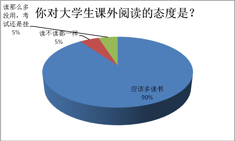 5.90%的学生认为,大学生应该多读书。读书是一种良好的生活习惯,虽然有些人抱着读不读都一样的态度,但是读书仍然是大学生的主流价值观