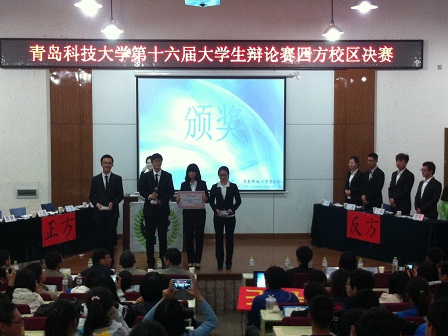 2014年5月6日晚6点半,青岛科技大学第十六届大学生辩论赛四方校区决赛在讲学厅举行,辩论双方为pg电子平台