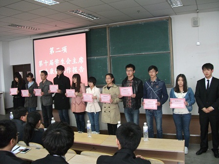 的学生会全体成员参加了此次大会。大会分为三个方面,首先,第十届学生会主席田永康总结了上学期学生会的工作,指出了学生会的工作方向。随后,史秘书长宣读了“十佳干事”“优秀个人”“优秀学生干部”的名单,并进行了颁奖表彰。最后,崔书记进行了总结性讲话,他首先代表pg电子平台