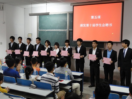 领导老师为第十届学生会“先进个人”、“十佳干事”和“优秀团体”颁发了证书,校学生会主席郑文涛又宣读《校学生会关于pg电子平台