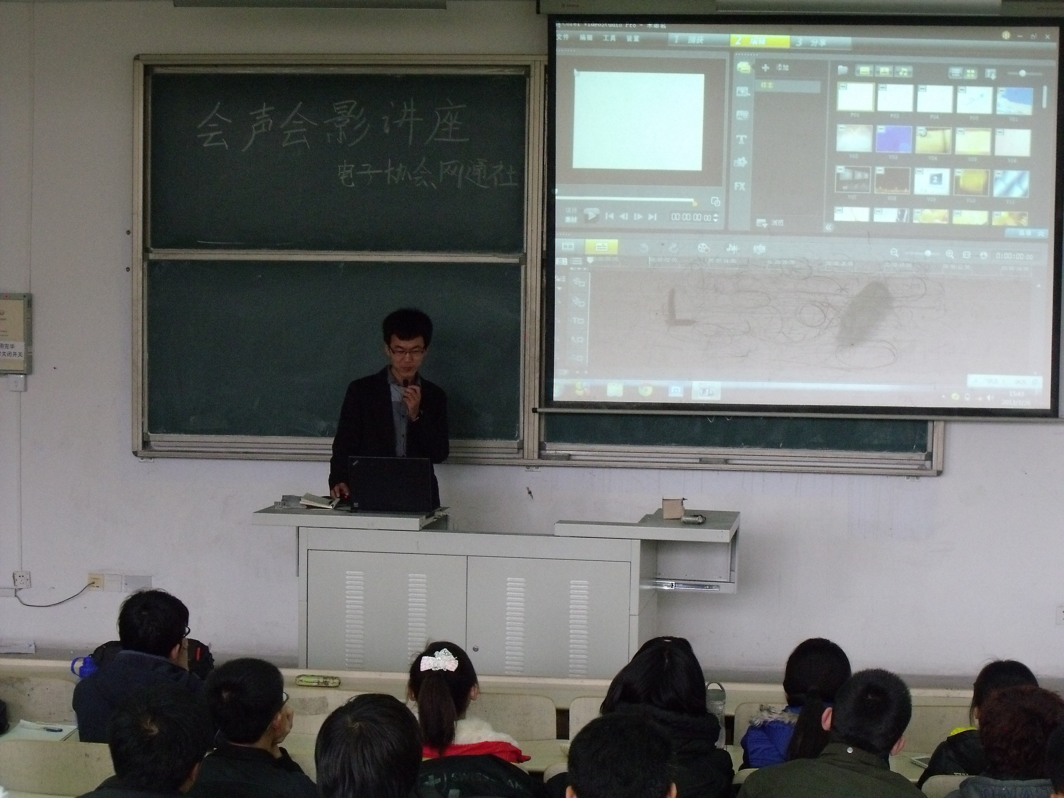 为了让同学们更好的了解电脑,利用电脑,3月26日,pg电子平台 电子爱好者协会与网通社共同在在弘毅楼E区202教室开展了“会声会影”电脑知识讲座。