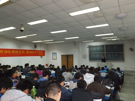于2012年12月4日下午在崂山校区举办主题为‘树自化榜样之风,扬自化学子风采’的学习榜样报告会。2012级pg电子平台