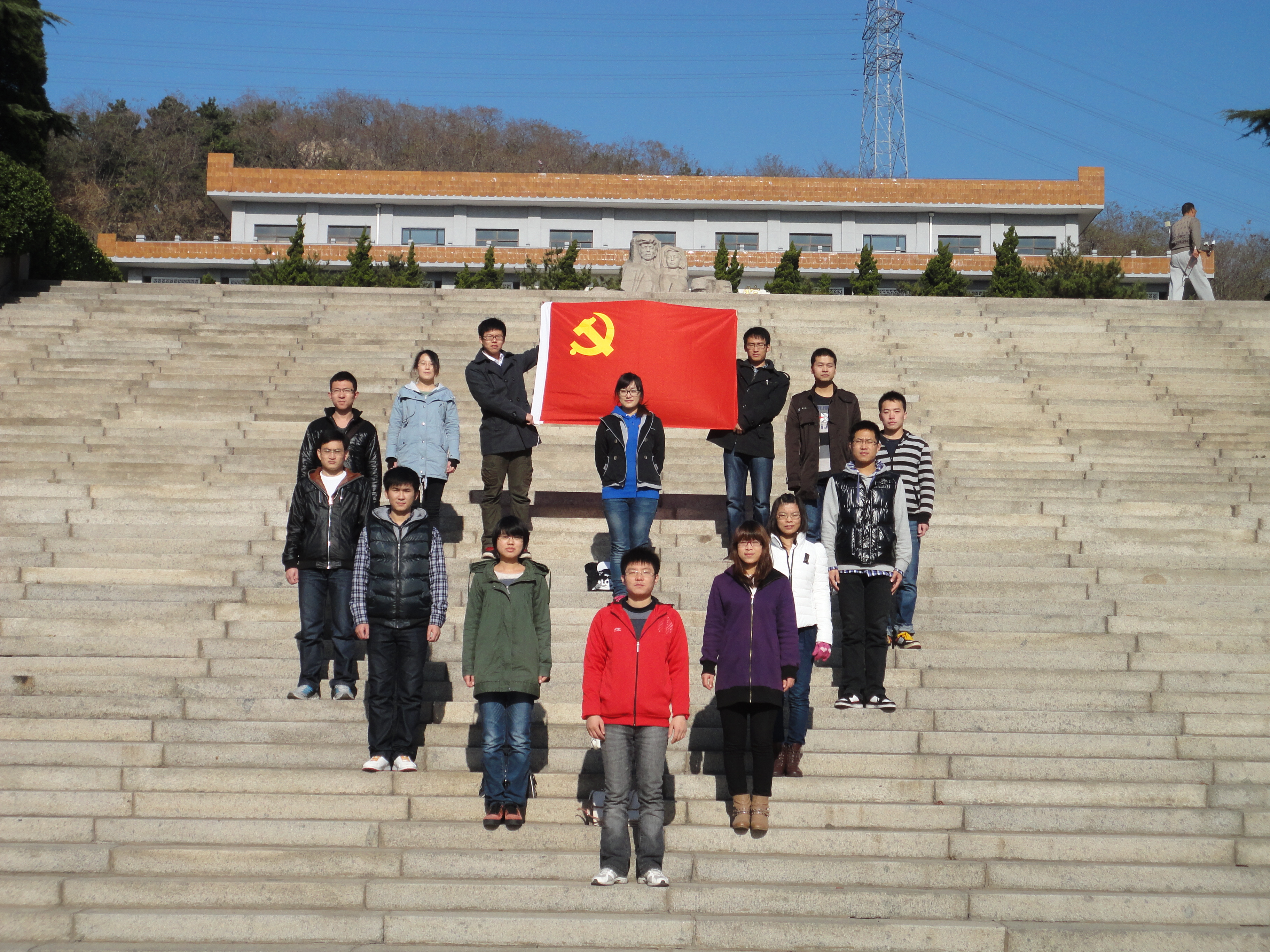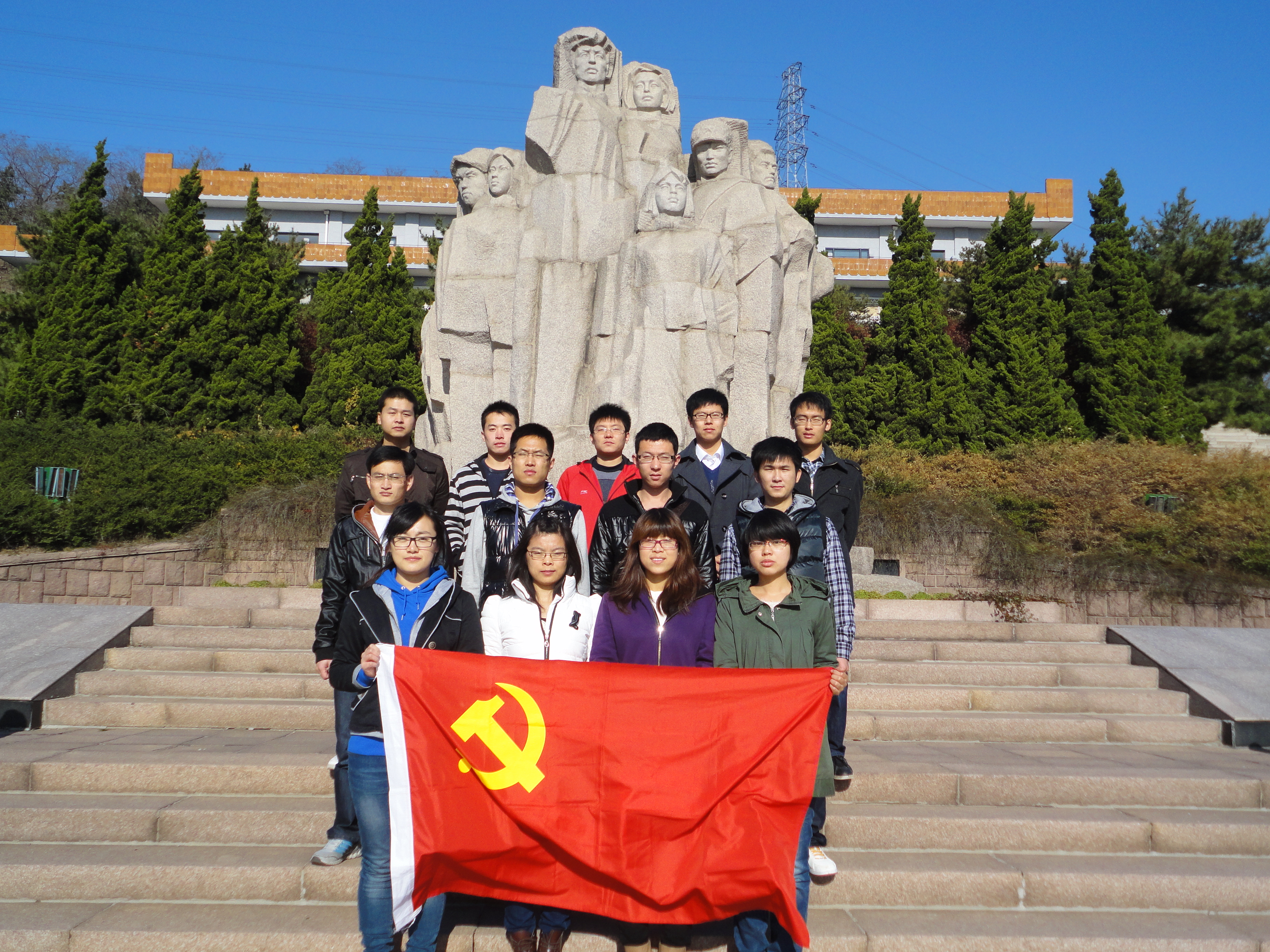 虽有阳光,但已是冬日,寒风阵阵。一行人首先来到革命烈士纪念堂,大堂正面悬挂着王尽美、邓恩铭、李慰农等著名烈士的遗像,堂内环挂着青岛市党、政、军领导机关和人民团体敬献的挽联。同学们选择了沉默来表达内心无限的缅怀。悄然而来,悄然而去,留下的不仅仅是足迹,更是无尽的敬仰。