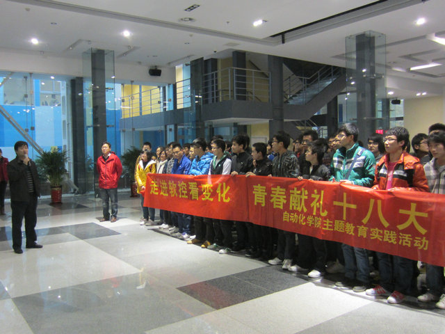 11月16日,pg电子平台 分团委组织开展了“走进软控看变化,青春献礼十八大”主题教育实践活动,引导学生感受祖国日新月异的科学发展成就,深入推进社会主义核心价值体系教育,坚定青年的理想信念,加强团员青年的思想引领,切实服务青年的成长成才,唱响时代主旋律,把学习贯彻党的十八大精神不断引向深入。