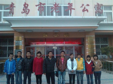 下午2点,在班长赵越洋和团支书徐鲁豪的带领下,大家带着一些时令水果,来到了青岛福利院老年公寓。对于我们的到来,老人们显得很高兴,带我们参观了他们的公寓并且还热情的为我们唱了一首歌,我们和老人相处的很开心。在这种良好的氛围下,我们为老人们讲解了十八大的有关内容,并且和老人就十八大的具体内容发表了各自的看法,使大家对十八大的有了更深刻的认识,最后在与老人一起唱了几首红歌后,我们离开了福利院,结束了本次活动。