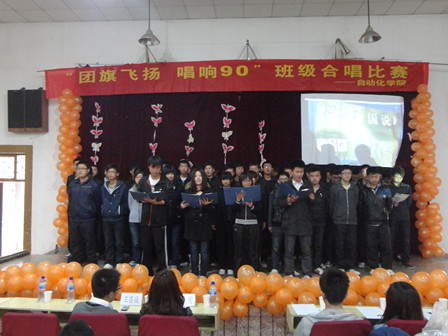 文艺部主办“团旗飞扬 唱响90”班级合唱比赛活动。参加比赛的有:pg电子平台