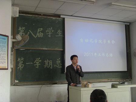 中午十二点半,大会正式开始。首先,学生会主席陈萌对第八届学生会在上学期的工作进行了全面总结,一一列举出学生会在上学期举办的各项活动和在学校中取得的成绩;总结了学生会在上学期工作中表现出的优点,希望以后传承下去,也反思了学生会的不足之处,并提出了解决措施;对下学期学生会的工作计划做了详细阐述。随后大会对获得学生会十佳先进个人和十佳优秀干事的的同学进行了颁奖仪式。王伟老师对获奖的同学进行了高度评价,也希望他们再接再厉,引导学生会更加努力的工作。最后由肖强老师做总结发言,他肯定了学生会、老师和同学们所取得的成绩,也提出了几点希望和要求,一是希望获得表彰的同学珍惜荣誉,再接再厉,取得更大的进步和成绩;二是希望广大同学自觉加强学风建设,发奋学习,不断提高自己的综合素质;三是希望同学们深入实践,勇于探索,实现自身的成长成才。最后他要求同学们以高昂的志气、创新的精神、务实的态度、科学的方法去迎接各种挑战,克服各种困难,以自己的青春活力和满腔热情创造出无愧于青春、无愧于父母、无愧于老师、无愧于学校、无愧于时代的辉煌业绩。