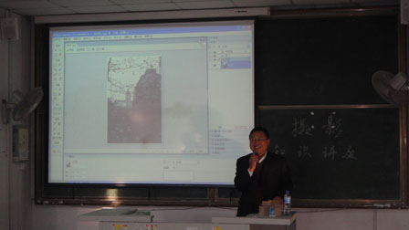 刘老师从摄影的器材,摄影构图等方面结合一些优秀的作品在如何提高摄影技巧方面作了详细的讲解,刘老师幽默的语言和丰富的知识得到了在场同学的热烈掌声。刘老师讲到“作为非专业的摄影爱好者在器材方面并不重要,重要的是你的取材。”并且他对一些图片的后期处理阐述了自己的观点。接着刘老师展示了自己作品,得到了在场的爱好者们的赞叹。最后刘老师对摄影爱好者们提出在学习之余可以通过摄影放松自己的心情,但在大学最主要的还是学习。本次讲座在愉快的氛围下圆满结束。