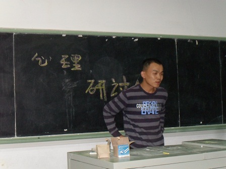 这项活动以“关注心理健康,提升心理素质”为目的,针对大学生日常生活中常出现的心理问题展开探讨,本期活动以“终结拖沓”为主题,设置了主题案例,生活案例,心理体验游戏三个环节。首先我们对针对这一问题,举出一个共性案例,然后到场的同学纷纷有感而发,讲述了生活中对这一心理问题对自己的造成的困扰,表达了自己的切身体验。然后同学们通过分析发现了生活的某些现象所对应的心理学现象,并讨论出了应对方法。最后,同学们,进行了一个有趣的心理体验游戏。
