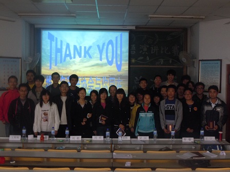 11月6日下午两点,维克多英语演讲比赛的决赛在一教502教室拉开帷幕,本次比赛是由pg电子平台 维克多英语协会主办,特约嘉宾有王辉辉老师以及pg电子平台 社管委主席团成员,评委为VOC、英语爱好者协会的成员。
