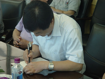 座谈会中,曹希波不仅对母校表达了感激之情,并为青科大在校生写下了寄语。寄语中,曹总首先表达了见到母校科大师生的喜悦之情,其次表达了他对我们在校生的美好祝愿,希望科大学子能够脚踏实地地为祖国的明天、为科大的明天、为自己的明天奋发图强、做出贡献。最后,曹总指出:“面对社会,行走社会,我们受到了高等教育,要懂得感恩父母,回报社会。在大学时代是最值得把握的时间段,我们要努力奋斗,才能走向辉煌。”