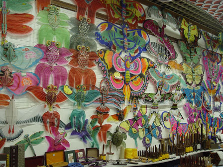 连日缠绵的夏雨,给稍显闷热的潍坊带来了清爽的凉意,队员们在雨后的清新中,来到了闻名已久的风筝广场。还没进入此次的主要目的地,队员们已在广场上目不暇接地沉醉于一砖一瓦的古意中。在博物馆不起眼的入口处,里面挂着的各式各样的翩然欲飞的风筝已经深深地吸引住了大家的眼球。在完全进入展厅内,大家完全置身于一个风筝的殿堂,一瞬间被小小的风筝所能散发的耀眼光华所震撼。从狰狞猛兽到温顺可爱的家畜,从风姿绰约的小姐到彪悍魁伟的武夫,从五彩平面图到缤纷立体画,古代与现代共存,国粹与外来经典并荣,风筝品类之全,形态之多,实在无法用言语所能浅薄描绘。而更让大家惊奇叹服的是潍坊的风筝文化,从历史到发展,从单纯娱乐消遣玩具到与军事、生活、百姓身心健康紧密联系的社会工具,再到悠久并使潍坊人引以为傲的传统文化,这多年的坚持与传承,造就了这段灿烂耀眼的风筝文化。已司空见惯的小小风筝,曾自己就能制作的认为最简单不过的手工艺品,竟能蕴含如此之深的文化底蕴,实在令队员们自叹见识浅薄,井底之蛙了。下午5点,实践团一行人在念念不舍、意犹未尽的情思中,离开了带给大家震撼与感动的风筝博物馆。