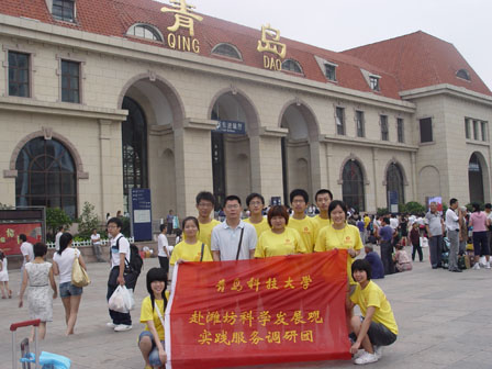 来到了美丽的潍坊,大家在观美景的同时,也清楚地明白了自己来到这儿的任务与工作,即在这儿将实践做得充实,能真正用自己的知识与行动普及潍坊人民对科学发展观的认识,并且提升自己对各大公司的了解与认识。