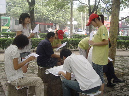 赴新泰实践团在新泰市街心花园进行了题为“中华人民共和国成立六十周年”的调查活动,在市民的热情参与下,活动取得了圆满成功。