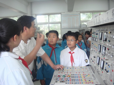 下午两点二十左右,洛一小学学生到达我校老校区,受到pg电子平台 分团委副书记刘名森、社管委有关人员的热情接待。小学生们首先在社管委有关人员带领下来到我校极具特色的一号行政楼前合影。随后,大家参观了电工电子实验中心,实验中心刘建南老师给他们讲解了实验原理,并进行了简单的演示,对于电工综合实验仪,小学生们表现出了极大的兴趣,认真听取了实验室老师的简单介绍,还不断向陪同的大学生们提出各种问题。