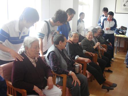 在志愿者同学的带领下我们早早的来到了疗养院,老人们个个精神矍铄,热情欢迎同学们的到来。为了让老人们高兴,同学们精心为老人们准备了一系列精彩的节目,包括健康经典的老歌、舞蹈和一些适合她们的游戏。同学们与老人们亲切的交谈,有的给老人按摩。活动进行中,老人们热情高涨,虽然她们行动不便,但从她们洋溢着笑容的脸上可以读出她们内心的喜悦。一些老人也即兴演唱了他们的拿手歌曲,仿佛又回到了年轻时代。活动了进行了大约两个半钟头,老人们到活动结束时仍舍不得离开,同学们把老人搀回住处,有的老人拿出水果给同学们吃,有的还欢迎同学们再来。前哨疗养院负责人周主任说:“在这么一个特别的日子举办一个这样的活动非常有意义,老人们平时没有娱乐性、参与性这么强的活动,她们之间很少能聚到一块,每天也仅仅是散散步打打牌,通过这次活动可以看出她们的心情非常舒畅,连平时不爱说话的几位老人也经不住大家的感染一展歌喉”。