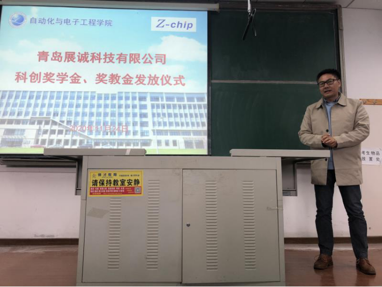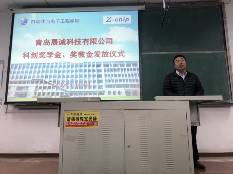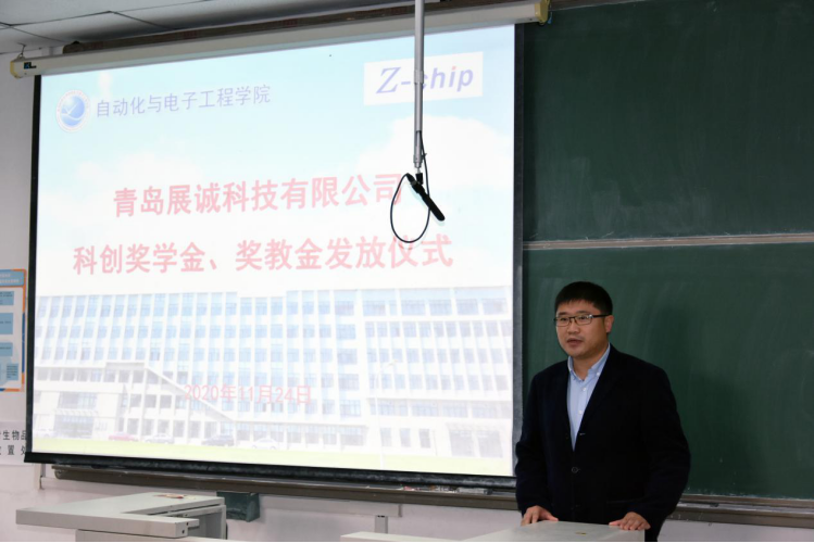科创奖学金、奖教金发放仪式于11月24日下午在明德楼举行。青岛展诚科技有限公司总经理袁鹏飞、pg电子平台
