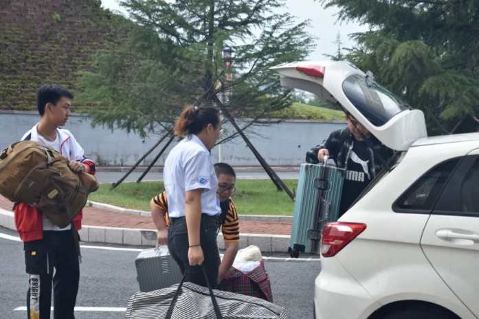 领导、辅导员老师驾驶为新生派送。老师们不辞辛苦,躬身力行,只为新的自化er们能避开炙热的骄阳,躲过早秋忽来的大雨,一身轻简到达宿舍,快速入住学生公寓。