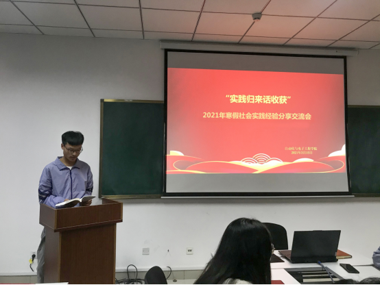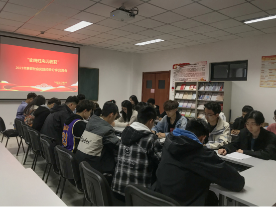 楼406会议室举办了以“实践归来话收获”为主题的2021年寒假社会实践经验分享交流会,辅导员老师张郁浩、2020级主要学生干部以及开展社会实践的同学代表参加。参会同学积极分享自己开展的社会实践活动。