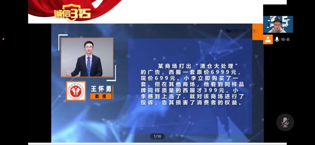 各年级同学齐聚云端,积极参与,认真学习讲解的相关知识,提高自身消费者权益保护意识,为疫情下的课余生活增添了一分色彩。