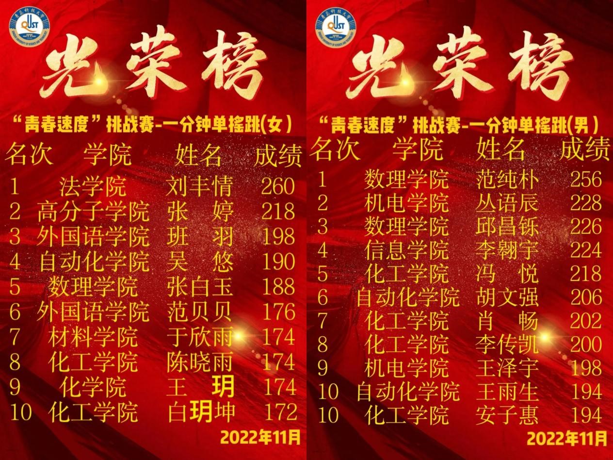 在青岛科技大学跳绳大赛中取得优异成绩: