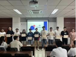 表彰环节,安柏雅、刘志飞为上一届易班工作站站长、各部门部长颁发荣誉证书。